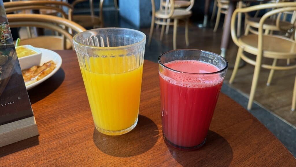 I tried both the fresh watermelon juice and orange juice.