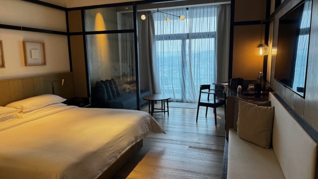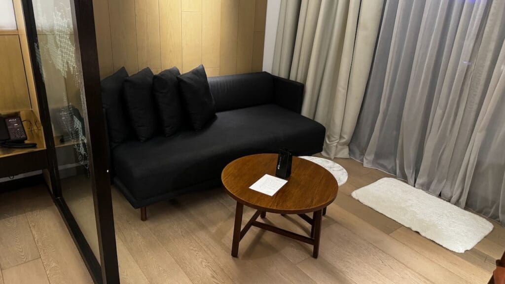 Deluxe Balcony Rooms at the Alila Bangsar are all located on the hotel’s bottom floor, the 35th floor, and have 495 sq. ft. of living space and an 86 sq. ft. balcony on top of that. It’s laid out in a quite familiar yet comfortable layout for a hotel room with divisions between the bathroom, bedroom, couch/desk area, and a balcony.