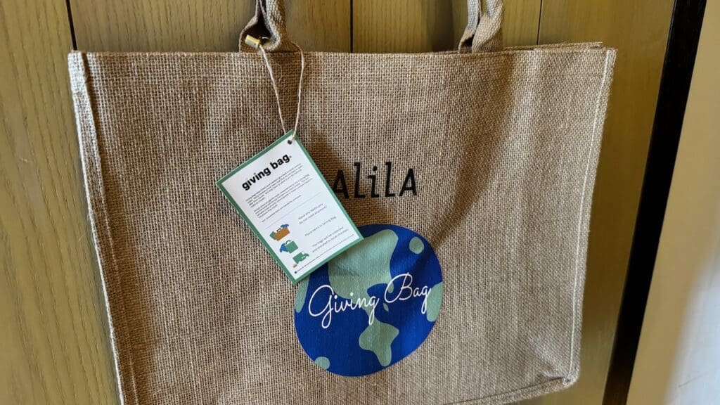 In a cute concept, there’s a bag in the room where lightly used items can be left to be donated to charities as part of Alila’s partnership with the Giving Bag organization.
