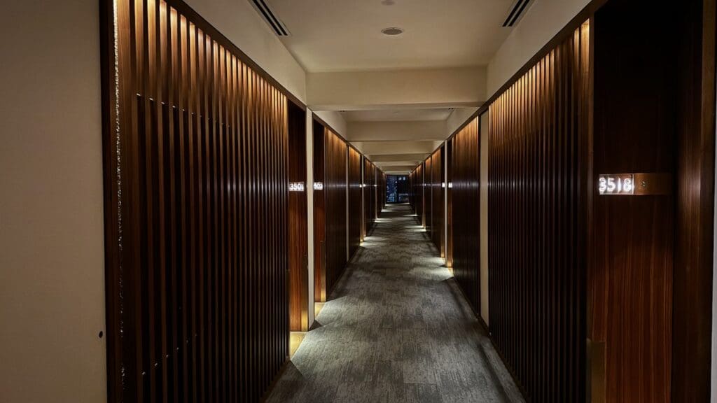 The hotel occupies the 35th to 41st floors of the building so upon arrival, you’ll need to take an elevator up to the 41st floor to the hotel’s main lobby to check in.