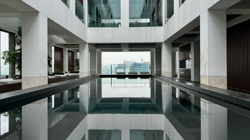 The hotel describes itself as a modern urban retreat. The standout feature is the pool surrounded with greenery located on the 40th floor of the building overlooking Kuala Lumpur with views of Merdeka 118 and Kuala Lumpur Tower. The hotel has 144 keys split between 113 studios, 13 deluxe balcony rooms, 6 premier rooms, 5 junior suites, 5 Bangsar suites, and an Alila Suite with a whopping 2700 sq. ft. of space.