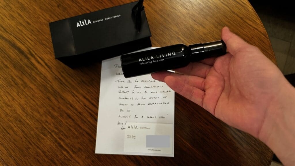 A welcome amenity and a handwritten note from the general manager welcoming me back to the Alila Bangsar was waiting in the room providing a nice personal touch. The welcome amenity was a bottle of refreshing face mist spray from the house brand, Alila Living.