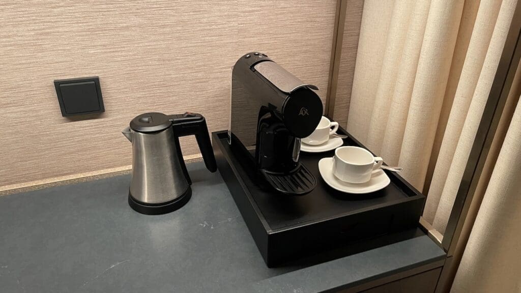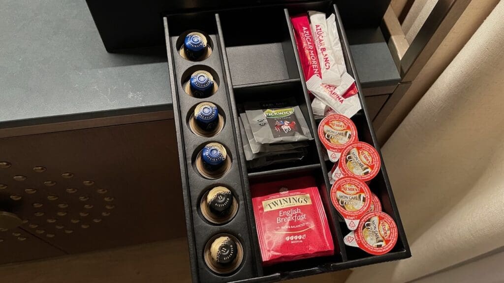 Unfortunately, while the hotel provided six Nespresso pods, four of them were decaf. I never quite understand how this happens but this seems to be a recurring issue across all hotels. It seems to me that if anything, the ratio should be reversed or only real coffee left in the room with decaf only available upon request. Anyway, this issue was promptly resolved upon request.
