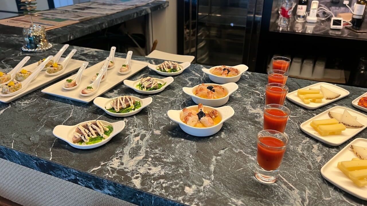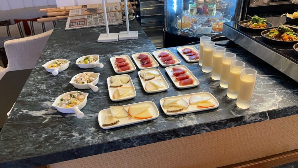 This is one of the most impressive club lounges I’ve seen at any hotel in Europe, or realistically, anywhere outside of Asia and the middle east. Note that the selection of canapés in the photos are what was offered over two days since we were granted an late checkout beyond the 4 pm late checkout for Globalists (based on availability at resorts).