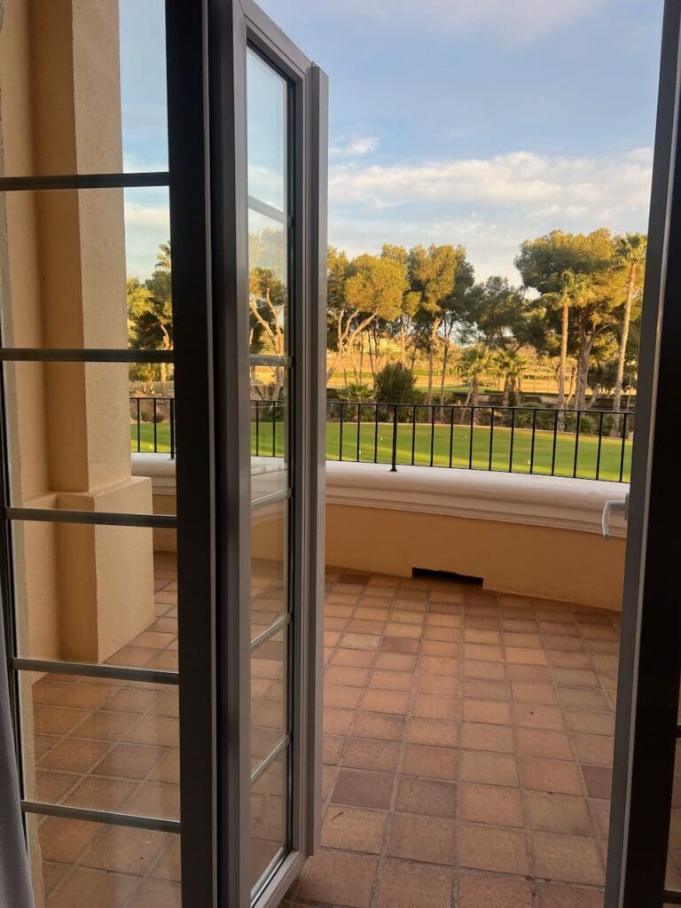 The suite comes with a sizable terrace looking out over the beautifully manicured grounds of the La Manga Club golf course. It being December, it was warm when the sun is out and fantastic sweater weather when it was behind clouds. The terrace made for an excellent place to enjoy the scenery while watching golf parties make their rounds through the course.