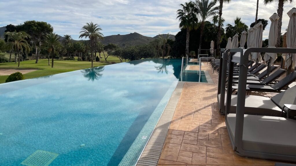 The Grand Hyatt La Manga has two pools: one larger pool that is all-ages and an adults-only infinity pool overlooking the 18th hole of one of the golf courses. While the weather was brisk, I did take a dip and enjoyed some time in the December Spanish sun with the bucolic backdrop.