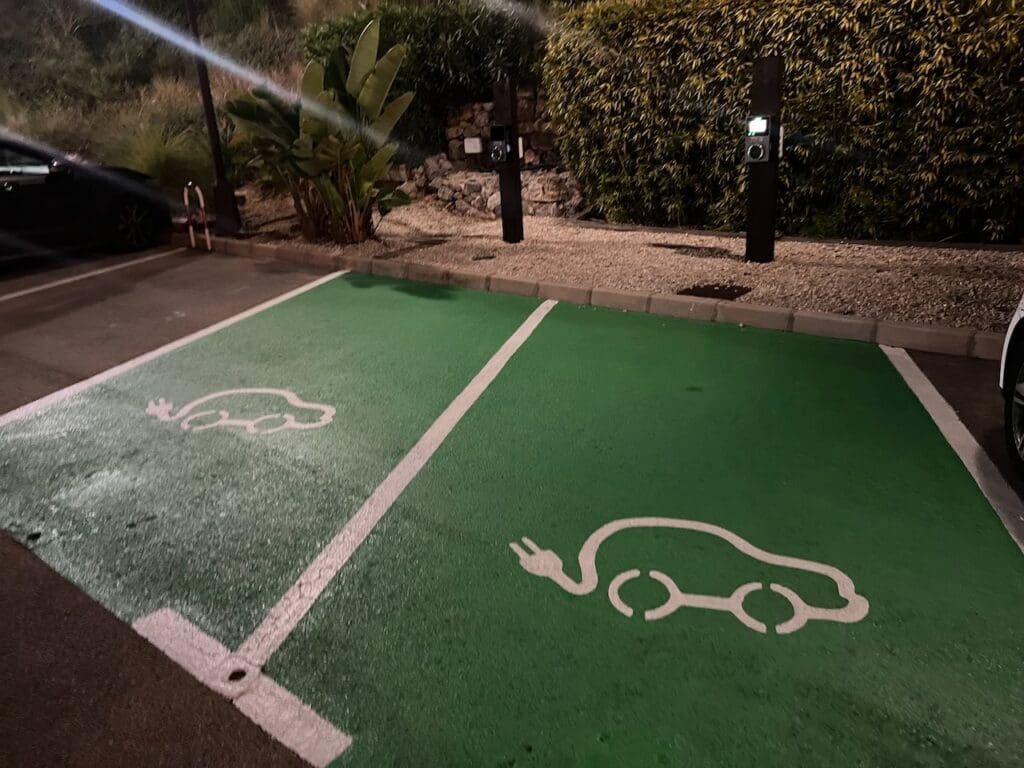 There are two electric car parking spots available at the hotel.