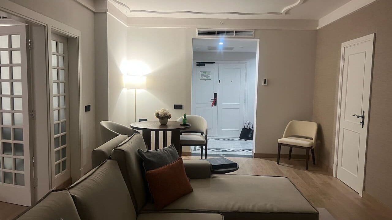 While the hotel’s facilities are flawless, there was one hiccup during the stay. While my friend had already gone to sleep, I stayed up to get some work done in the living room. I finished up around 2 am and headed to take a quick shower before going to sleep. When I turned the faucet, there was no water. I called the front desk and service was… abysmal. The night agent’s English was barely serviceable. It took considerable back and forth and a manegerial escalation, before I eventually was given access to a nearby room to shower.