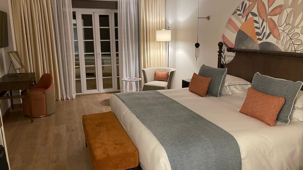 The check-in experience was efficient and done with a flute of Cava (Spanish sparkling wine) in hand. We were informed that we had been assigned a La Manga Club Suite looking over the gold courses as part of Hyatt’s policy of upgrading Globalists to the best available room at check in. After a couple drinks in the Club, we headed to the room and found our bags already deposited in the room.