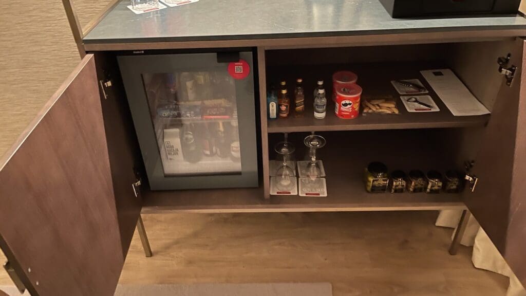 The suite had a stocked minibar along with a Nespresso coffee machine and kettle for tea set up in the corner of the living room.